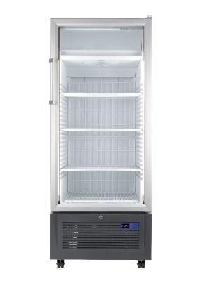 Dokonale vystavené zboží pro přílákání pozornosti zákazníků. obsah 365 l, digitální ukazatel teploty, samozavírací prosklené dveře, ventilátor, NoFrost, optický a akustický alarm, LED osvětlení.