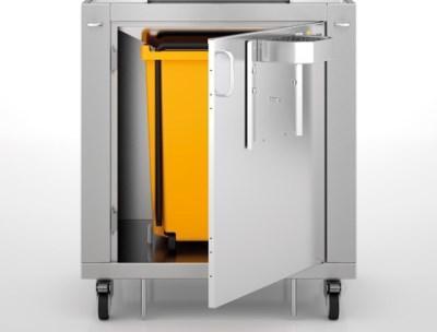 - robustní nerezová konstrukce mobilního podstavce s křídlovými dvířky