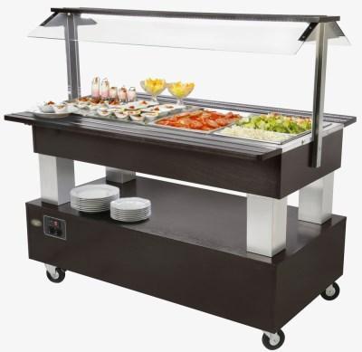 Salátový bar chladící SB 40 F od francouzského výrobce ROLLER GRILL. Určen nejen pro samoobslužný systém obsluhy.Model s přístupem ze 2 stran.Kapacita bufetového vozíku: 4× GN 1/1 s maximální hloubkou 150 mm.