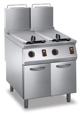 Plynová fritéza se dvěma nádržemi, vyrobená z nerezové oceli AISI 304. OVLÁDÁNÍ ELEKTRONICKÉ.