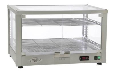 Vyhřívaná stolní vitrína WD 780 SI od francouzského výrobce ROLLER GRILL. Určena speciálně pro snack bary, pivnice, pekařství, čajovny, atd.Elektricky vyhřívaná vitrína na quiche, pizzy, croissanty, buchty, zákusky, sýr nebo vepřové pusinky apod.Udržuje konstantní teplotu.Se zvlhčováním (nádobka na vodu).
