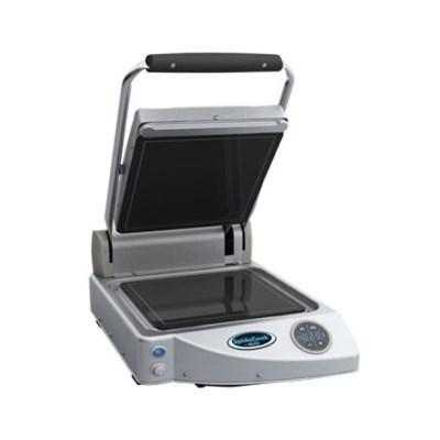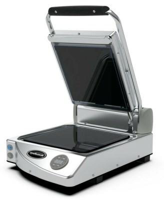 Ideální využití v rychlém občerstvení, ale i v běžných kuchyních. Kontaktní gril se sklokeramickou hladkou černou pečící deskou je ovládán digitálně. Jedná se o jednodílný model, který se dokáže rychle nahřát do 90 sekund. Gril je robusní přístroj z nerezu a je dodáván s nožičkami a je možné jej umístit na pracovní plochu.