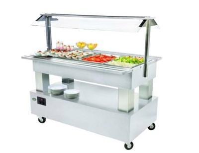 Salátový bar chladící SB 40 F od francouzského výrobce ROLLER GRILL. Určen nejen pro samoobslužný systém obsluhy.Model s přístupem ze 2 stran.Kapacita bufetového vozíku: 4× GN 1/1 s maximální hloubkou 150 mm.