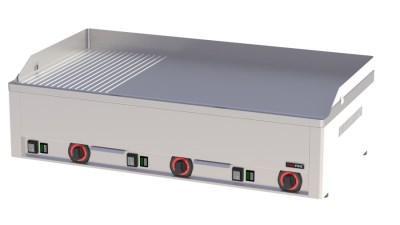 Grilovací plotna je vyrobená ze speciálního materiálu o síle 10 mm svařená s lemem. Grilovací plotna je rozdělená na třetiny kde je každá regulovaná termostatem z rozsahem 50°C - 300°C.Velmi kvalitní grilovací plotna české výroby. Tato grilovací deska je vhodná do gastronomických provozů, které mají ve své nabídce grilovaná masa, ryby, ale i grilovanou zeleninu.