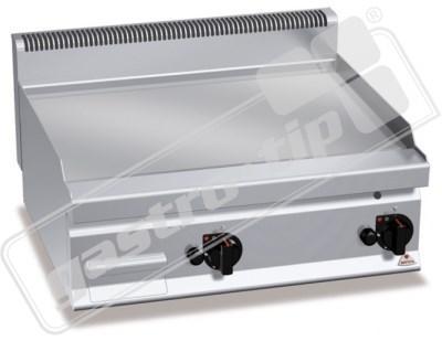 - Kompletní sortiment plynových a elektrických ploten s různým provedením grilovací plochy. Lze na nich připravovat pokrmy tzv. "kontaktem" a to nejcitlivějším způsobem. Jednotný systém distribuce tepla zaručuje rovnoměrné grilování po celé pracovní ploše, velké energetické úspory a zlepšení pracovního prostředí. Při grilování se přirozeně tvoří zbytkový olej, který je odváděn a shromažďován ve velké odpadní nádobce.
