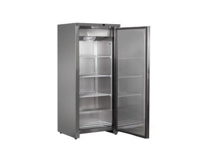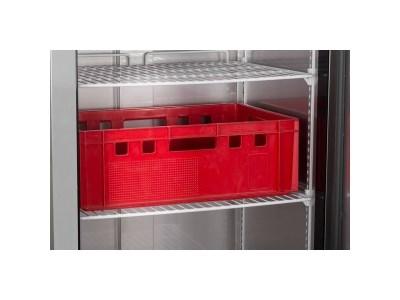 Mrazicí skříň s plnými dveřmi v celonerezovém provedení Mrazící skříň se skvěle hodí i do náročného gastroprovozu. Police jsou stabilní, lze na ně pokládat i těžší váhy, nosnost každé police je až 25 kg. Díky této nosnosti se jedná o ojedinělý produkt na českém trhu.