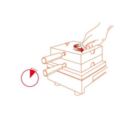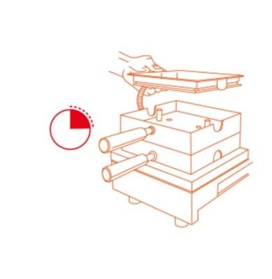 - Jedna litinová forma na 2 vafle s otevíráním 90° pro úsporu místa.