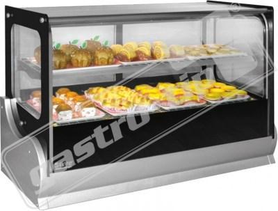 Vyhřívaná obslužná pultová vitrína s nerezovým AISI 304 provedením interiéru. Elegantní design, rovné čelní sklo, halogenové osvětlení jednotlivých polic (horní police 28x77cm, spodní police v rozměru 33x73cm).