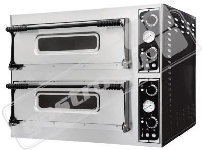 Dvoukomorová elektrická pizza pece řady BASIC MEDIUM. Snadné a přehledné mechanické ovládání umožňuje individuální nastavení výkonu spodních a horních těles v komoře případně vypnutí spodního, nebo horního tělesa.