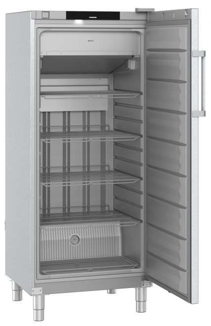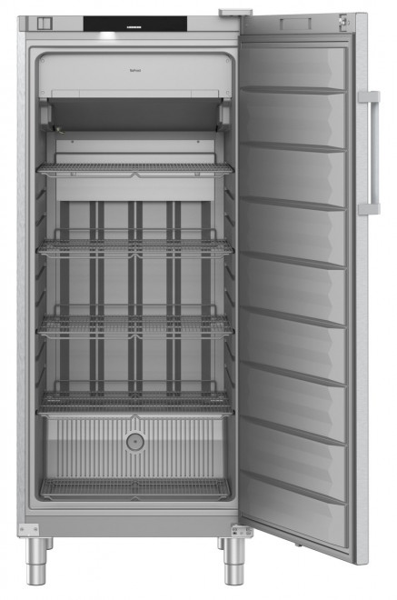 - Mraznička Performance s ventilátorem 472 litrů; lze vložit přepravku; ventilační chladicí systém (technologie NoFrost); uzamykatelné dveře SwingLine plné; en.tř. B; vnitřní LED osvětlení; rozsah chlazení: -9 / -26 °C; elektronické ovládání LC-displej monochrom; digitální zobrazení teploty; funkce optického a akustického alarmu: otevřená dvířka a výpadek proudu, s obnoveným napájením; funkce zámku kláves; přetlakový ventil; ohřev rámu dveří horkým plynem; vnější plášť z nerez oceli; jednodílný tepelně tvarovaný polystyren (ekologický) vnitřní plášť; čisticí otvor; 4 zesílené ocelové rošty 600x400 mm šedé s ochranným potahem; podlahové rošty; výšku polic lze nastavit na 85 mm; nosnost na polici: max. 60 kg; dveře se automaticky zavřou a směr otevírání lze obrátit; hygienická, vyměnitelná izolace dveří; automatický - nouzový a ruční start - odmrazování horkým plynem; nerezové nohy nastavitelné od 150 do 180 mm; chladivo bez freonů (R 290) a izolace stěn (70 mm); venkovní teplota: mezi + 10 / + 40 ° C - klimatická třída 5; lze spárovat s chladničkami FRFCvg 5501 a FRFCvg 5511; roční spotřeba energie: 1007 kWh; Třída energetické účinnosti B.