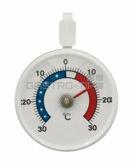- Plastový bimetalový teploměr s možností zavěšení. Rozsah stupnice -30 °C až +30.