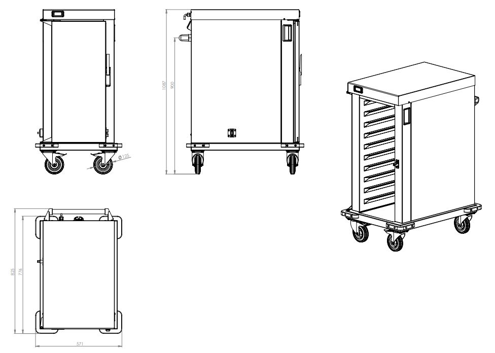 Úvodní stránka Servírování a výdej Zásobníky na talíře, transportní vozíky Transportní vozík, ETV-T 1×10 GN 1/1 s ventilátorem