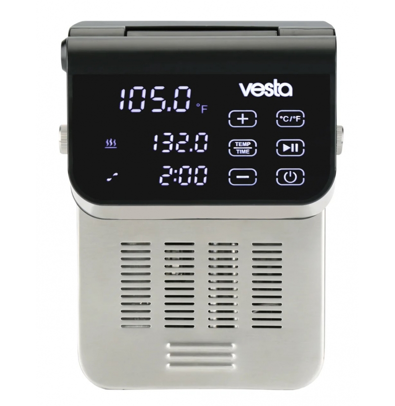 Ovládejte svůj přesný vařič z elegantního digitálního dotykového displeje nebo odkudkoli pomocí chytrého zařízení. Stačí si stáhnout aplikaci Vesta a snadno sledovat, nastavovat a ovládat ponorný cirkulátor z chytrého telefonu..