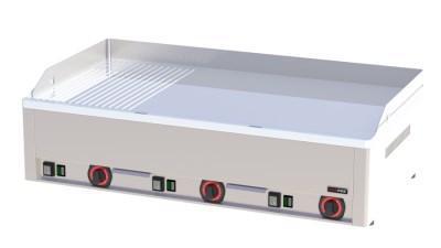Grilovací plotna je vyrobená ze speciálního materiálu o síle 10 mm svařená s lemem. Grilovací plotna je rozdělená na třetiny kde je každá regulovaná termostatem z rozsahem 50°C - 300°C.Velmi kvalitní grilovací plotna české výroby. Tato grilovací deska je vhodná do gastronomických provozů, které mají ve své nabídce grilovaná masa, ryby, ale i grilovanou zeleninu.