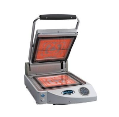 Ideální využití v rychlém občerstvení, ale i v běžných kuchyních. Kontaktní gril se sklokeramickou hladkou transparentní pečící deskou je ovládán digitálně. Jedná se o jednodílný model, který se dokáže rychle nahřát do 90 sekund a má fast grill systém. Gril je robusní přístroj z nerezu a je dodáván s nožičkami a je možné jej umístit na pracovní plochu.