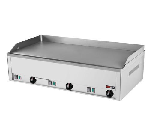 Grilovací plotna hladká FTH-90 E, je vybavena pracovní plochou, která je z teplovodné slitiny. Grilovací plotna je rozdělená na třetiny kde je každá regulovaná termostatem z rozsahem 50°C - 300°C.Velmi kvalitní grilovací plotna české výroby. Tato grilovací deska je vhodná do gastronomických provozů, které mají ve své nabídce grilovaná masa, ryby, ale i grilovanou zeleninu.