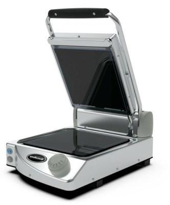 Ideální využití v rychlém občerstvení, ale i v běžných kuchyních. Kontaktní gril se sklokeramickou hladkou černou pečící deskou a má ovládání manuální. Jedná se o jednodílný model, který se dokáže rychle nahřát do 90 sekund. Gril je robusní přístroj z nerezu a je dodáván s nožičkami a je možné jej umístit na pracovní plochu.